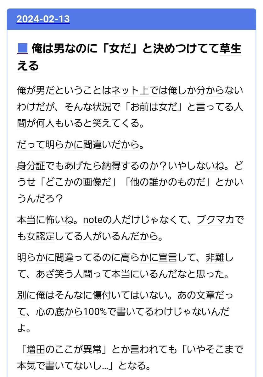- 名前:名無しさん 投稿日:2024-02-20 09:30:30返信する確かに最初の投稿では一人称が「自分」だったのが